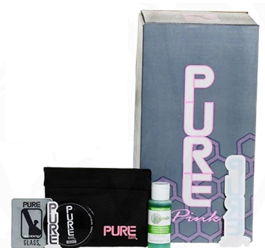 Die Little Dume wird in Los Angeles aus reinem, wissenschaftlichem Glas handgefertigt. Im Inneren schwimmt ein wunderschöner pinkfarbener herzförmiger Perkolator, der Ihre Dabs besonders sanft und kühl macht. Diese Rig wird komplett mit einem Quarznagel, einer Tragetasche, einem Carbonbeutel und einer Flasche Kryptonite-Glasreiniger geliefert. Alles, was Sie brauchen, in einem Set - ideal für zu Hause oder unterwegs!