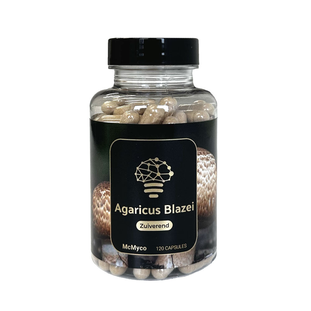 The McMyco Agaricus Blazei capsules have been carefully formulated to cleanse your body and stimulate your metabolism. Known as the 'Sunburst Mushroom', Agaricus Blazei is known for its positive influence on health. These capsules contain 400mg of organic Agaricus Blazei extract, sourced from 100% fruit body, enriched with Vitamin C and Zinc to naturally promote your well-being.