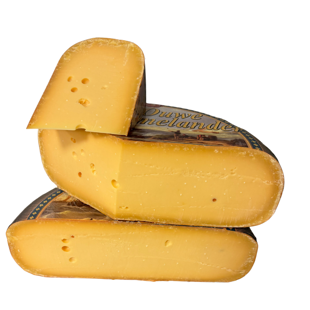 Ouwe Amelander es un queso añejo madurado de forma natural durante 12 meses, con un sabor intenso, lleno y a la vez cremoso. Los sutiles cristales de sal lo convierten en un favorito entre los amantes del queso. Disponible en 500 g, 1 kg y 1,5 kg.