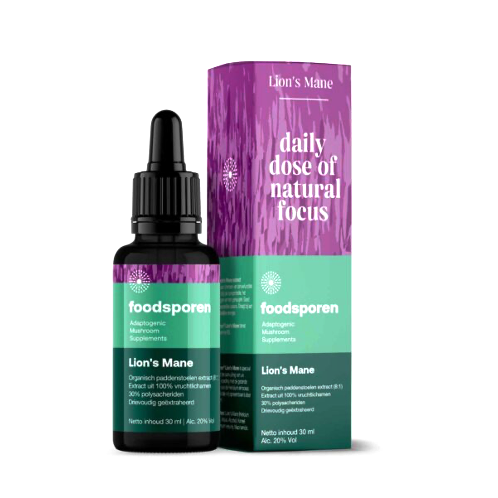 Mane: uno dei nostri preferiti di tutti i tempi! Il fungo di criniera del leone! Chiamato anche "il fungo intelligente" o "il sacerdote delle montagne". In Giappone, questo fungo è stato utilizzato per secoli per i suoi presunti effetti di supporto e restauro sulla mente. Un aspetto davvero speciale quando lo incontri nelle foreste, appeso a un moncone. Cosa rende così speciale la criniera di Lion? Gli ericenoni e le erinacina (alcaloidi presenti nella criniera di Leone) assicurano che il corpo stimoli la produzione della sostanza del corpo NGF. NGF sta per il fattore di crescita nervoso. NGF è necessario per la crescita di alcuni neuroni nel nostro cervello. Ha anche un ruolo nella mielinizzazione. Un processo che si occupa del trasferimento del segnale attraverso i nervi.