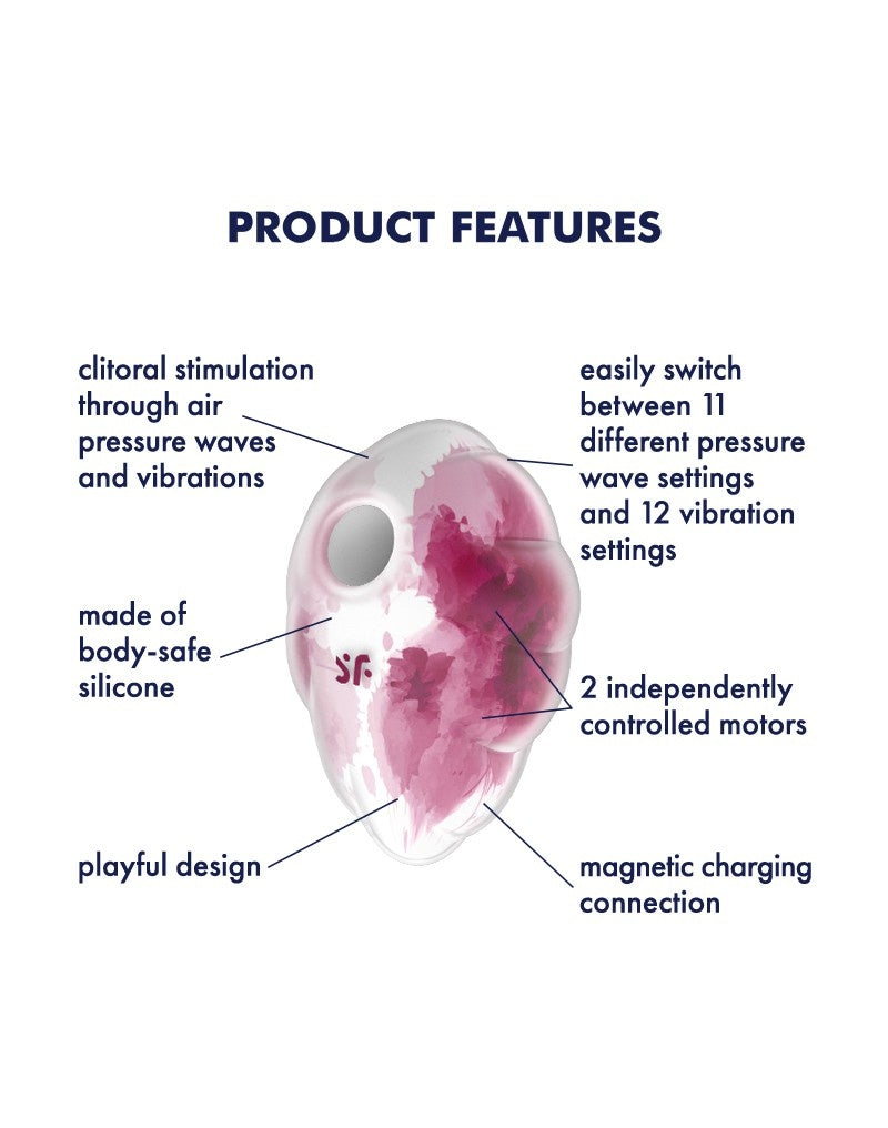 Dzięki innowacyjnej technologii, estetycznemu wyglądowi i wszechstronnym funkcjonalnościom, Satisfyer Cloud Dancer to pozycja obowiązkowa dla każdego, kto szuka luksusowego i skutecznego wibratora. Idealny zarówno dla początkujących, jak i doświadczonych użytkowników oraz idealny prezent dla Twojego partnera.