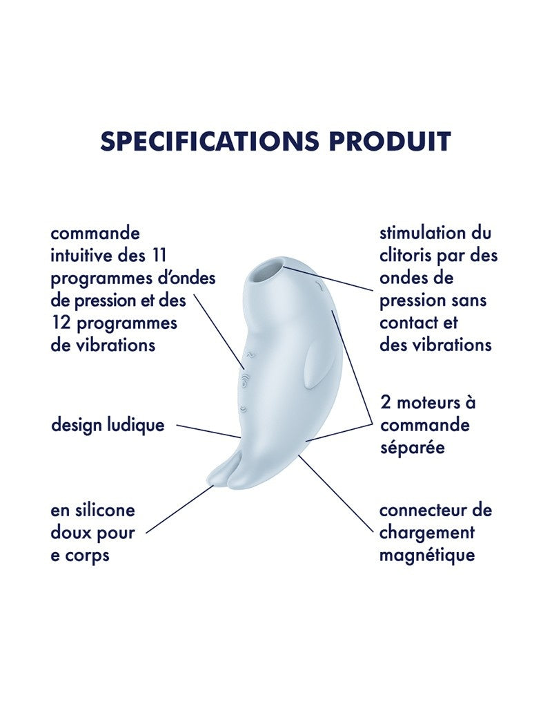 Wibrator Satisfyer Seal You Soon Air Pulse w kolorze niebieskim przeznaczony jest dla osób poszukujących intensywnych i wszechstronnych doznań. Ta innowacyjna zabawka łączy w sobie technologię ciśnienia powietrza z potężnymi wibracjami, dzięki czemu możesz bawić się w wyjątkowy sposób.