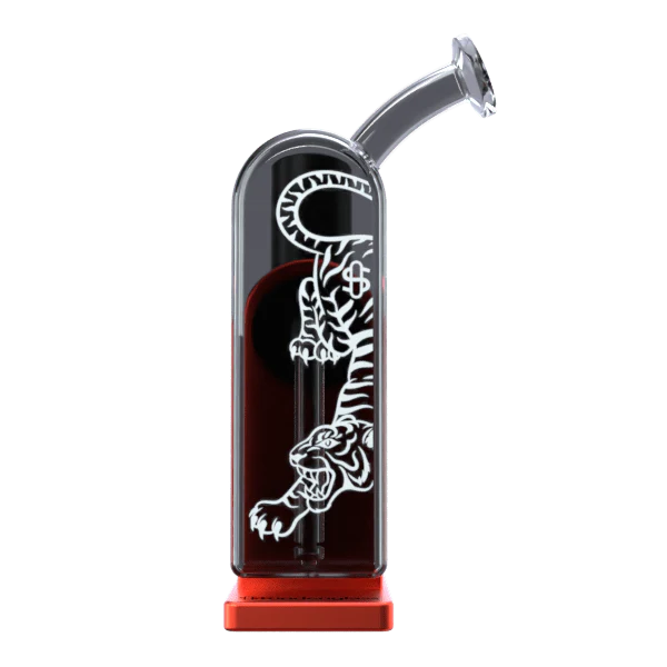 Ten zestaw jest nie tylko funkcjonalny; to oświadczenie. Zestaw podróżny Modül Dok Deluxe jest dostarczany w odpornej na upadki, specjalnie wykonanej walizce podróżnej w kultowym czerwonym kolorze Mike’a Tysona. Szare szkło borokrzemianowe jest ozdobione uderzającym białym tygrysem po jednej stronie i czerwonymi i czarnymi paskami tygrysa po drugiej stronie, symbolizującymi siłę i dziedzictwo Tysona. Co więcej, Modül tworzy płynne, magnetyczne połączenie z dowolną fajką wodną Stündenglass Gravity Hookah i Dok, co jeszcze bardziej zwiększa jego wszechstronność. Ta solidna i trwała konstrukcja z mocną baterią zapewnia, że zawsze będziesz gotowy do akcji.