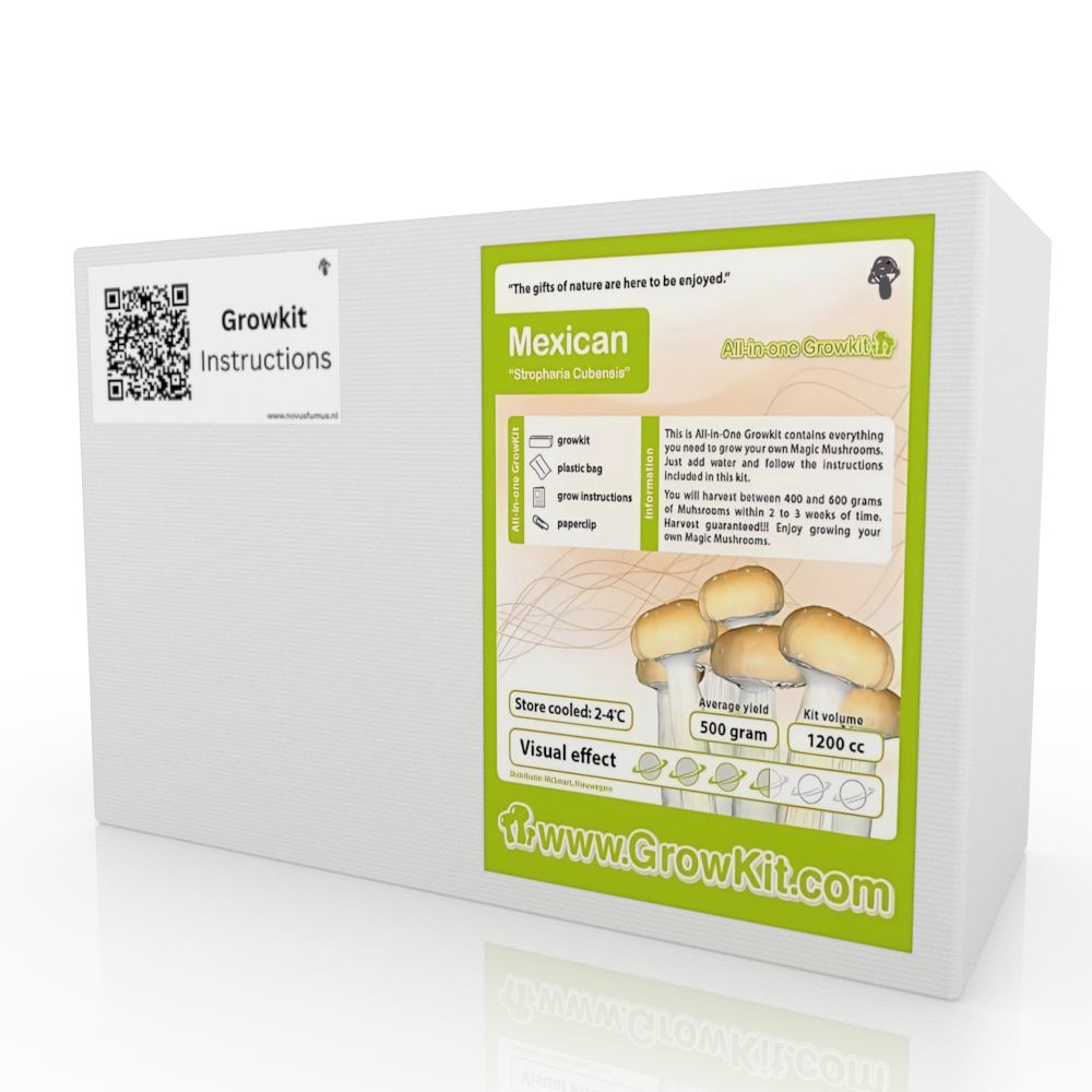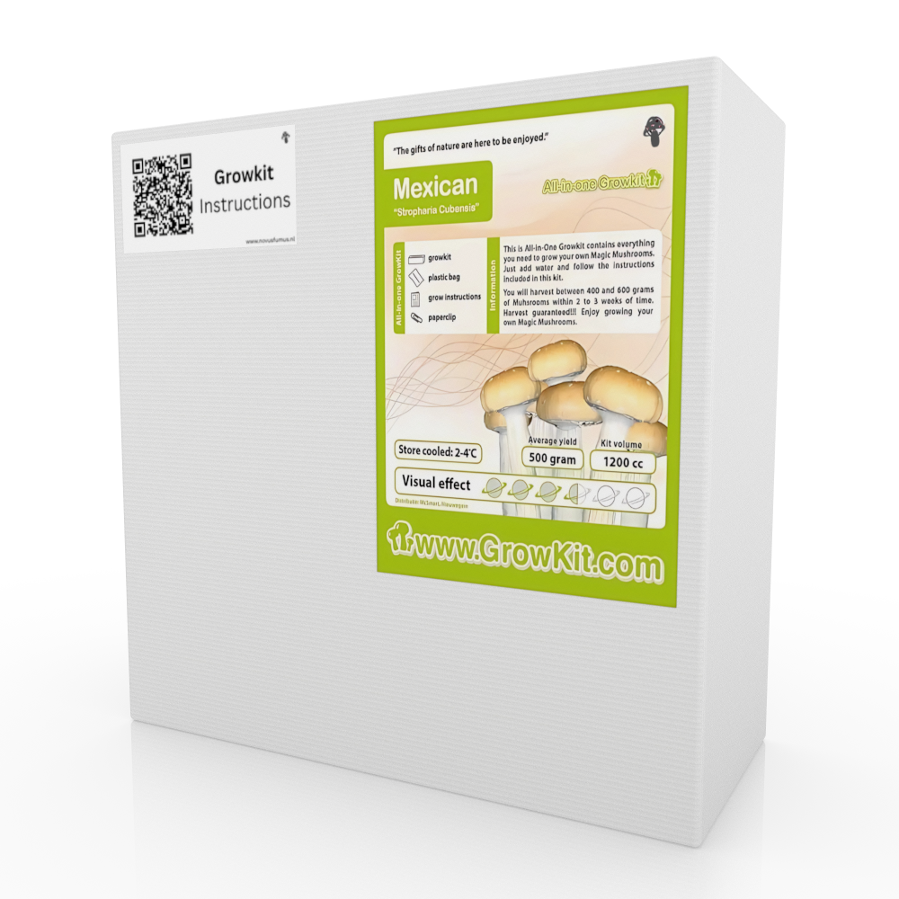 De Mexican Growkit is een complete kweekset waarmee je eenvoudig thuis je eigen verse paddenstoelen kunt kweken. Of je nu een beginner of een ervaren kweker bent, deze kit biedt alles wat je nodig hebt. Met een opbrengst die varieert van 100g tot wel 1000g, afhankelijk van de gekozen kitgrootte, geniet je binnen enkele weken van je eigen oogst.