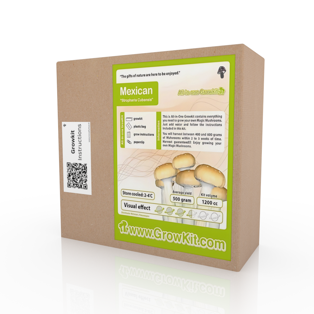 De Mexican paddenstoel staat bekend om zijn milde, heldere tripervaring die ideaal is voor beginnende gebruikers. De growkit is ontworpen voor zowel gebruiksgemak als hoge kwaliteit, wat het een uitstekende keuze maakt voor kwekers van elk niveau.