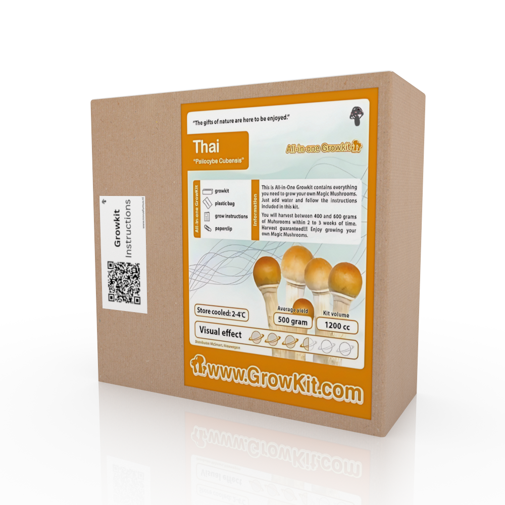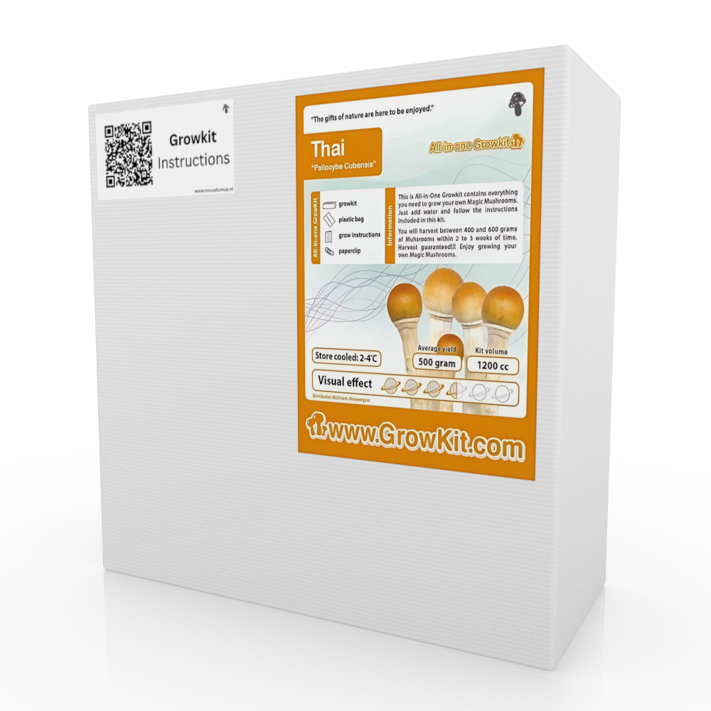 Met de Thai Growkit kun je snel en eenvoudig thuis je eigen verse paddenstoelen kweken. Deze kit bevat alles wat je nodig hebt om direct aan de slag te gaan, of je nu een beginner bent of een ervaren kweker. De Thaise paddenstoel staat bekend om zijn milde en vrolijke effecten, wat zorgt voor een euforische en heldere ervaring. Binnen enkele weken kun je genieten van een oogst die varieert van 100g tot wel 1000g, afhankelijk van de gekozen kitgrootte.