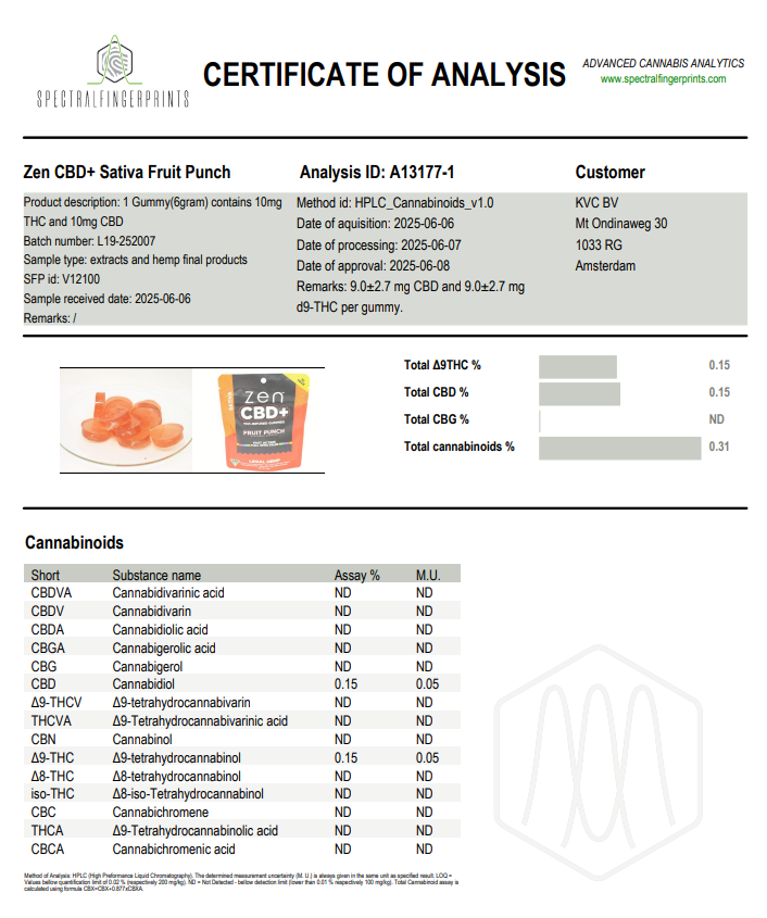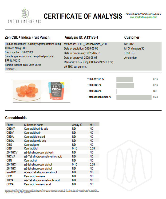 Suiker · Glucose-fructosestroop (of maïssiroop) · Water · Gelatine · Citroenzuur · Pectine · Hennep-extract · Natuurlijke en kunstmatige aroma’s · Natuurlijke en kunstmatige kleurstoffen · Plantaardige olie · Zonnebloemlecithine